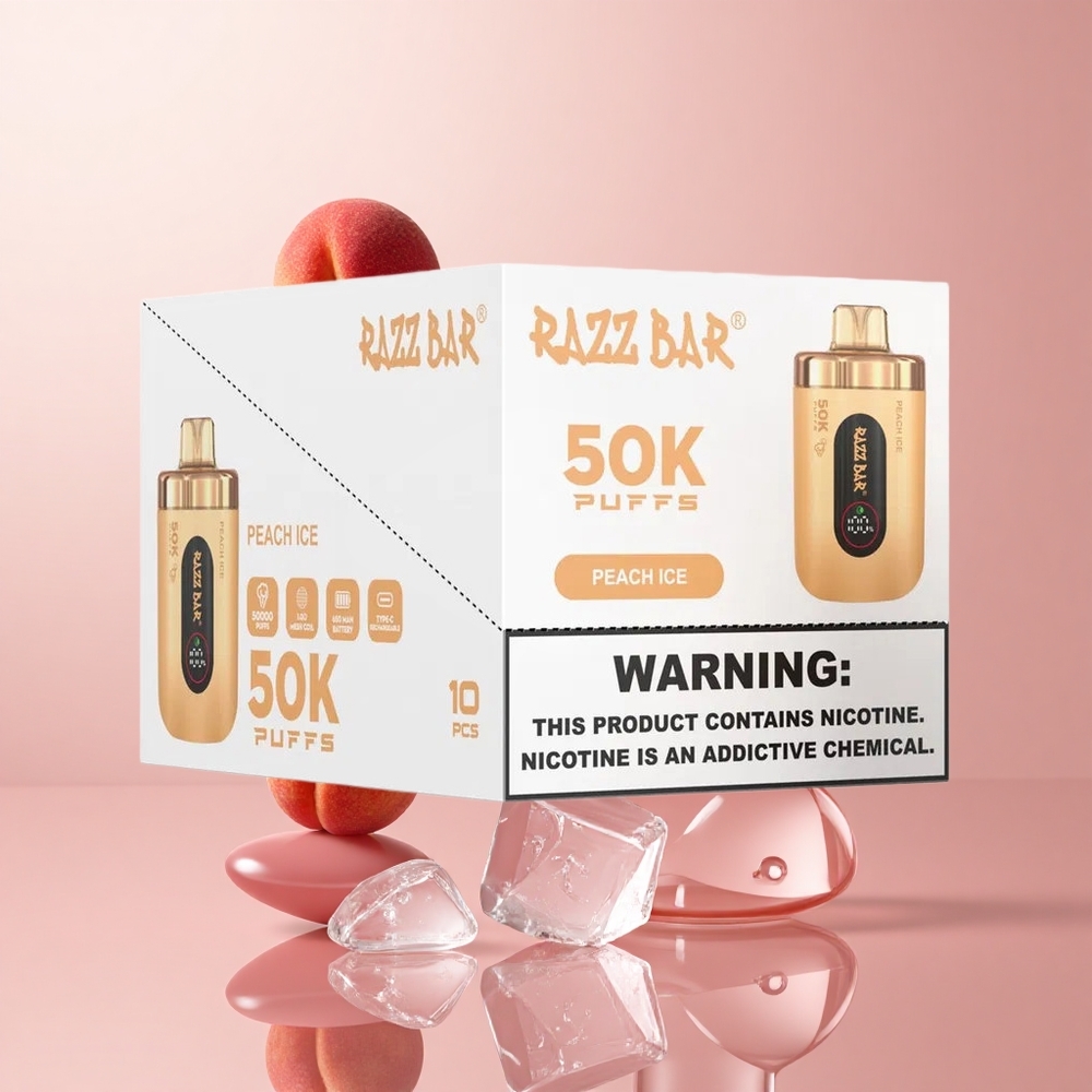 Razz Bar 50K Puffs Eldobható E-cigaretta Őszibarack Jég